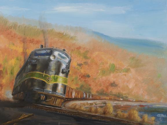 Here are a few of my paintings of colorful first generation diesel locomotives as they looked in the 1950s and 1960s.